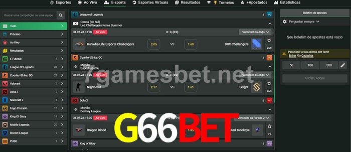 A aposta G66Bet oferece aos jogadores a experiência mais conveniente de apostas em eSports!